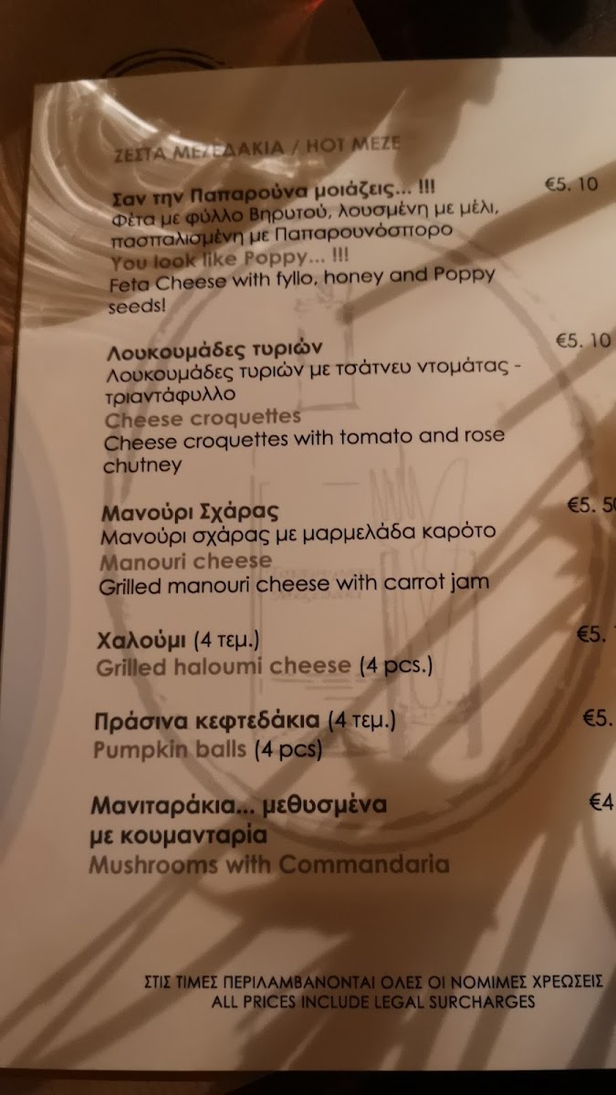 The menu at Tsipouraki Mezedaki offers a thoughtful selection of traditional Cypriot flavors served in a relaxed taverna setting. It blends familiar meze-style dishes with creative touches that invite sharing and leisurely dining, making it well suited for casual gatherings or relaxed evenings out.